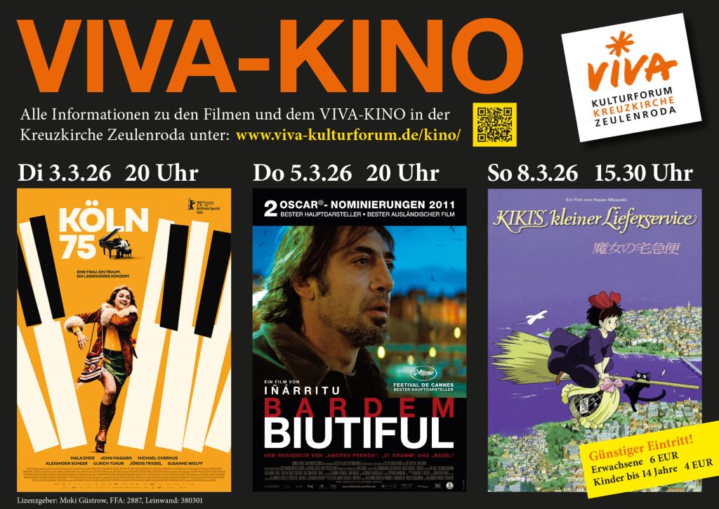 Einlass immer 30 Minuten vor Beginn. Getränke und Snacks werden angeboten.